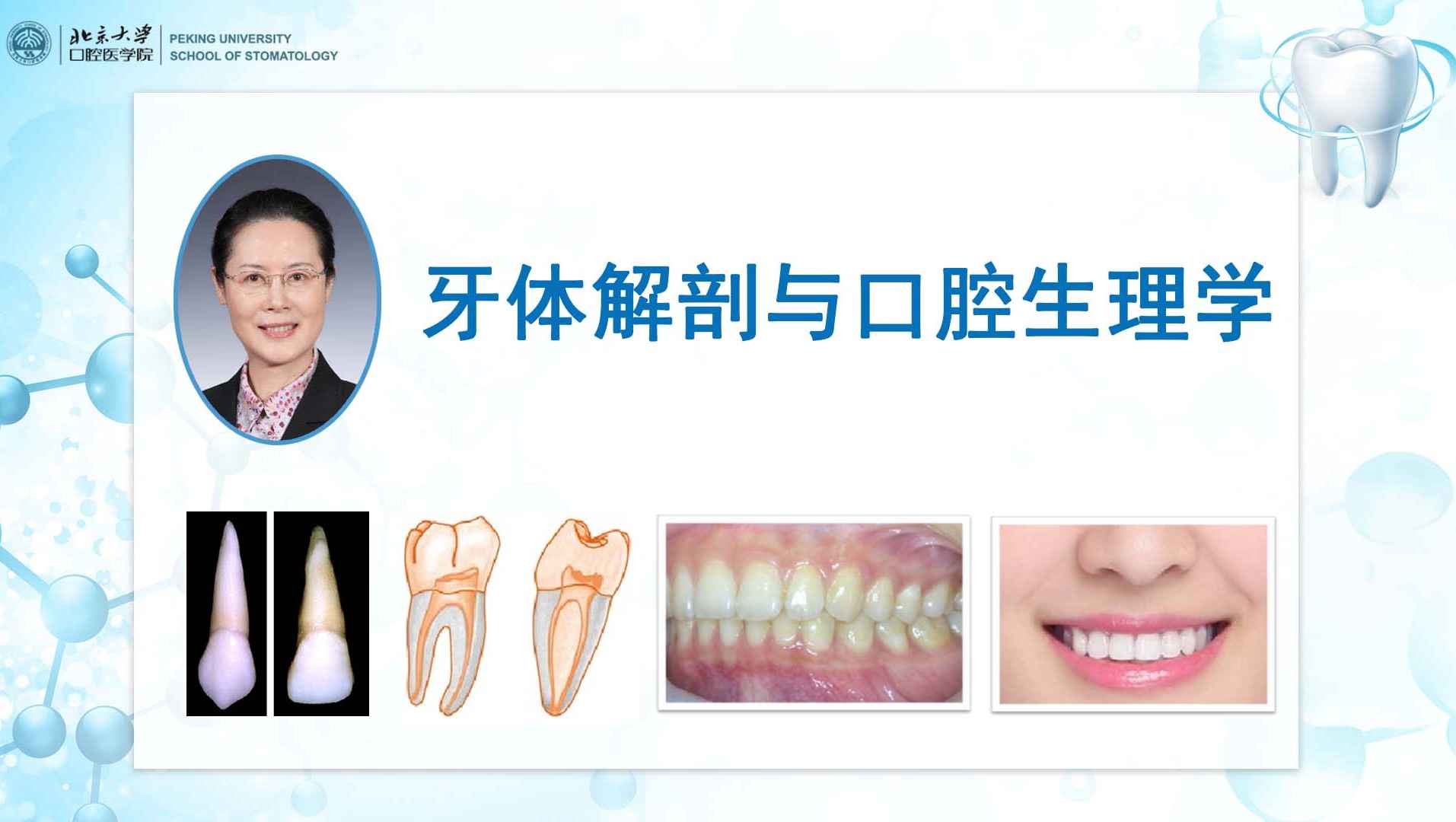 牙体解剖与口腔生理学(dental anatomy and oral physiology)是口腔医学中一门重要的基础课程,其讲授内包括:①天然牙牙体和髓腔形态与结构,形态与功能的关系及临床意义;②牙列、牙合、颌位及正中关系的概念,并研究分析在临床诊断与治疗中的意义;③口腔生理功能,理论联系临床实际阐明口颌系统生理功能规律与重要临床意义。本科阶段的主要学习任务是学习基本理论、基本知识和基本技能。